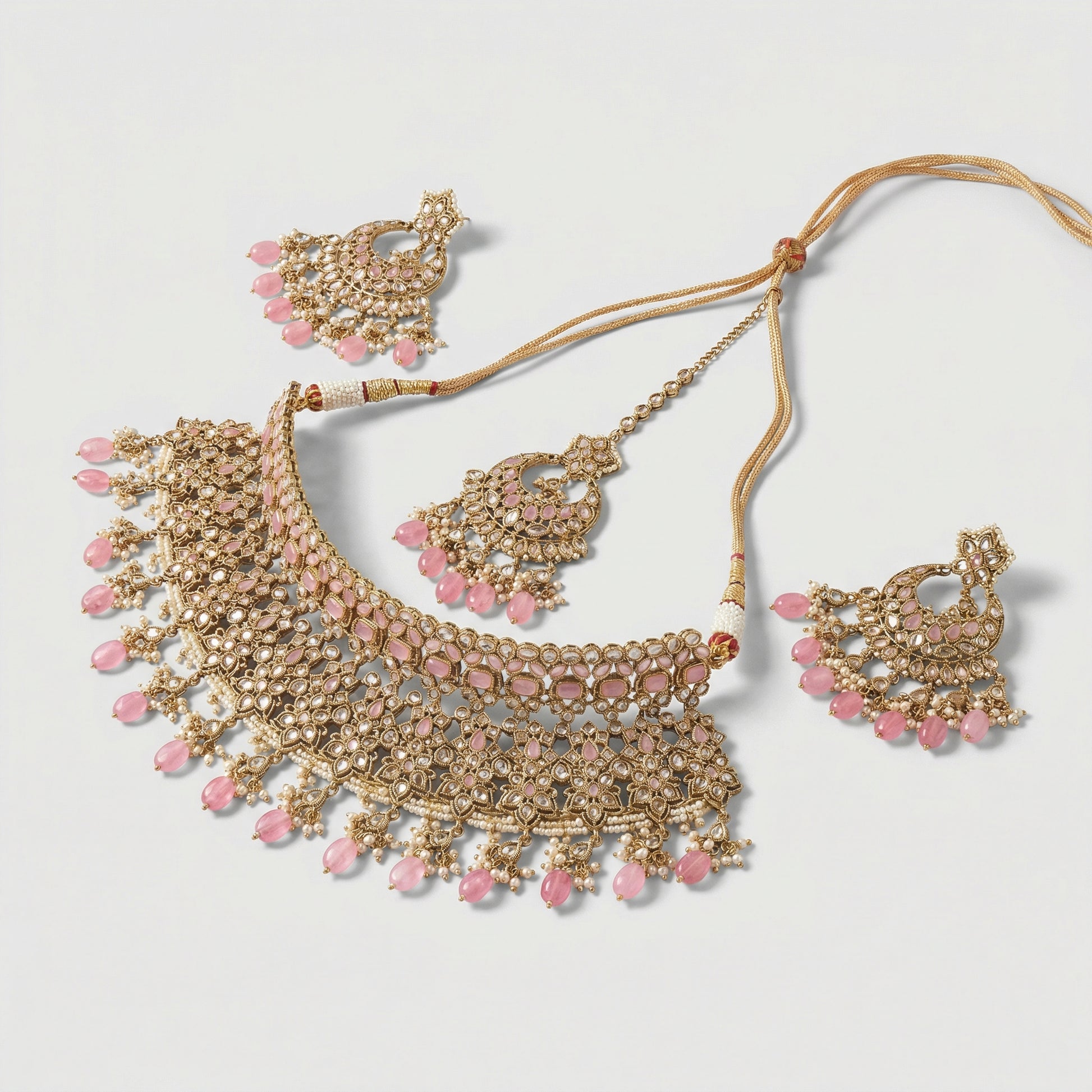 - Necklace with matching earrings; tikka included if shown in images