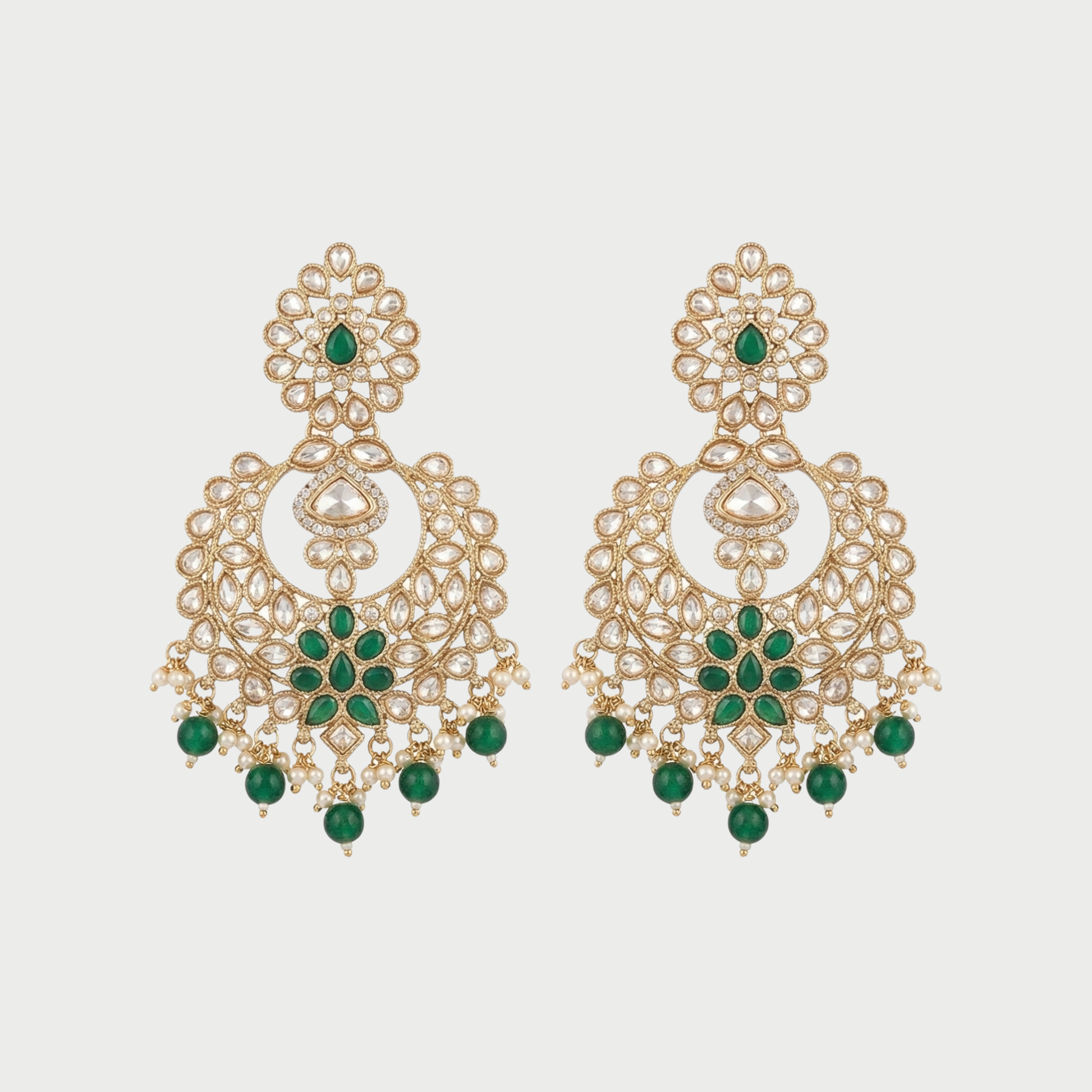 Emerald Polki Chandelier Earrings