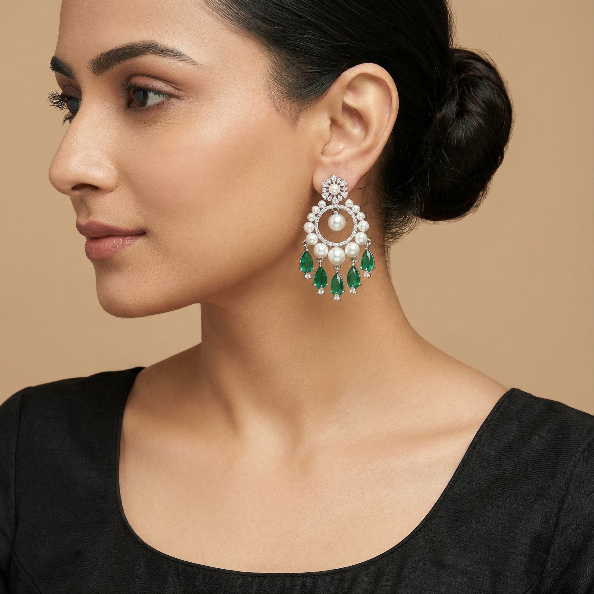 Emerald Halo Drop Earrings