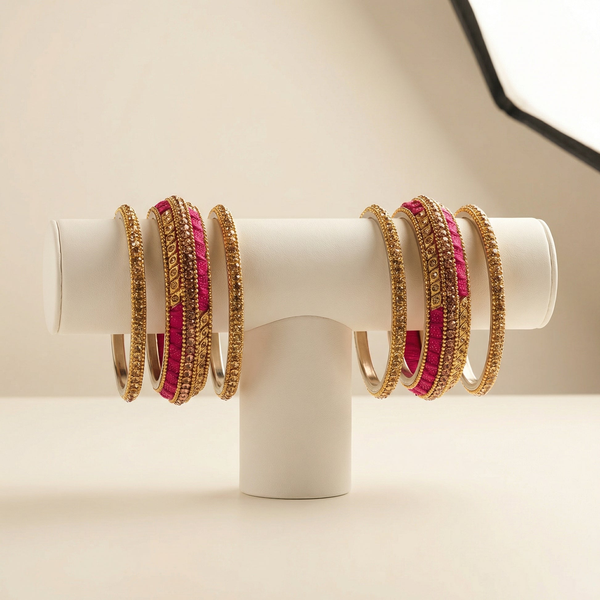 Gilded Magenta Bangles - Set of 6